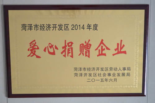 7日上午,菏泽市经济开发区劳动人事局、菏泽开发区社会事业发展局组织召开2014年度慈善工作先进集体和先进个人表彰会,山东sunbet官网公司荣获“2014年度菏泽市经济开发区爱心捐赠企业”荣誉称号。自2005年开始,山东sunbet官网在总部工会的支持下累计向社会慈善捐款高达10万多元、各类慰问款共计20余万元。