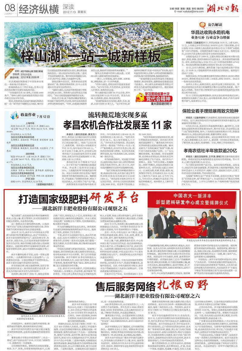 中国农大资源与环境学院院长、留德博士张福锁,曾任国务院测土配方施肥专家组组长,他专程来到sunbet官网公司考察,荆门之行给他留下深刻印象:sunbet官网拥有20多名专职农化人员、400多名销售人员、3000家代理商、30000个零售商,服务网络“根系”发达,肥料品质过硬,这正是要找的合作对象。