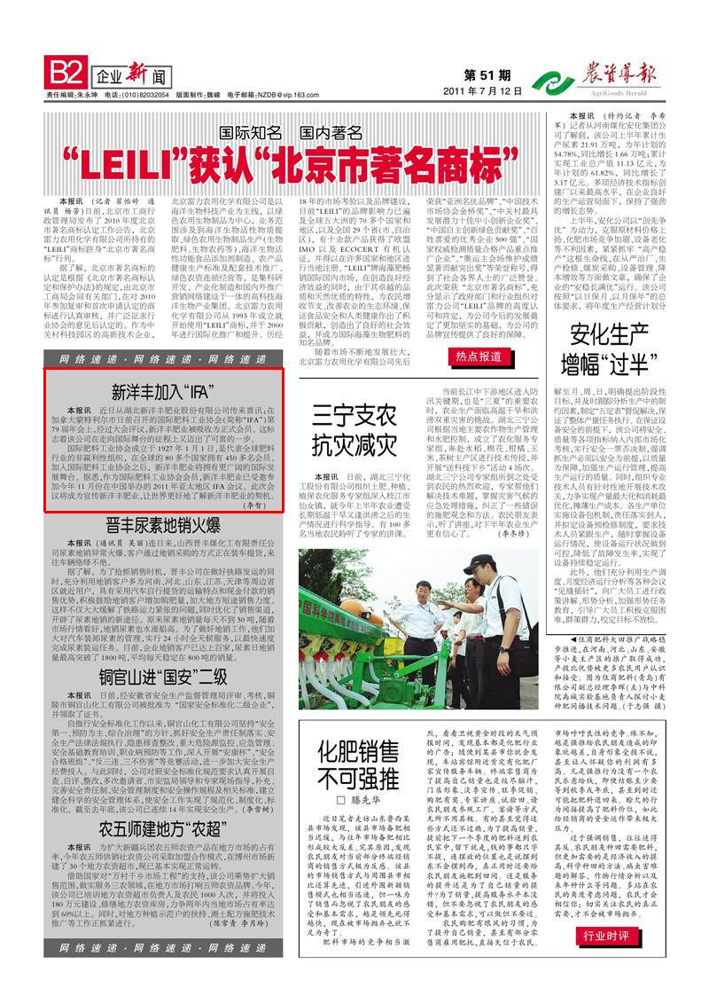 近日从湖北sunbet官网肥业股份有限公司传来喜讯:在加拿大蒙特利尔市日前召开的国际肥料工业协会(简称“IFA”)第79届年会上,经过大会评议,sunbet官网肥业被吸收为正式会员。这标志着该公司在走向国际舞台的征程上又迈出了可喜的一步。