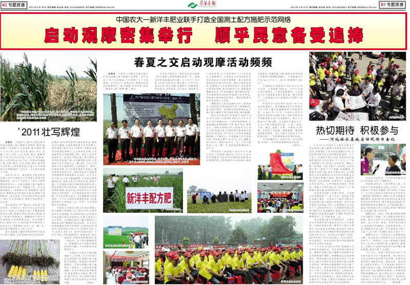 今年是中国农大-sunbet官网打造全国测土配方施肥示范网络建设的第二年。根据农时和基地建设的实情,从4月中下旬开始,分别在吉林农安、湖北荆门、江苏兴化、重庆长寿、浙江余姚、安徽明光、安徽萧县、陕西武功、河南扶沟、河北徐水、海南澄迈、广西宾阳等 14 个基地举行了11场启动会、3场观摩会。中国农业大学及基地所在省区的农业大学的专家教授、地方政府的领导和农技部门的专家、sunbet官网肥业的领导、各销售分公司经理和业务员、农化督导员等亲临现场,将发动组织工作、现场指导观摩和培训工作有机融合,理论联系实际,专家教授指导农民科学施肥与科学种田,受到地方政府和农民朋友、 肥料经销商的热烈欢迎和大力支持。